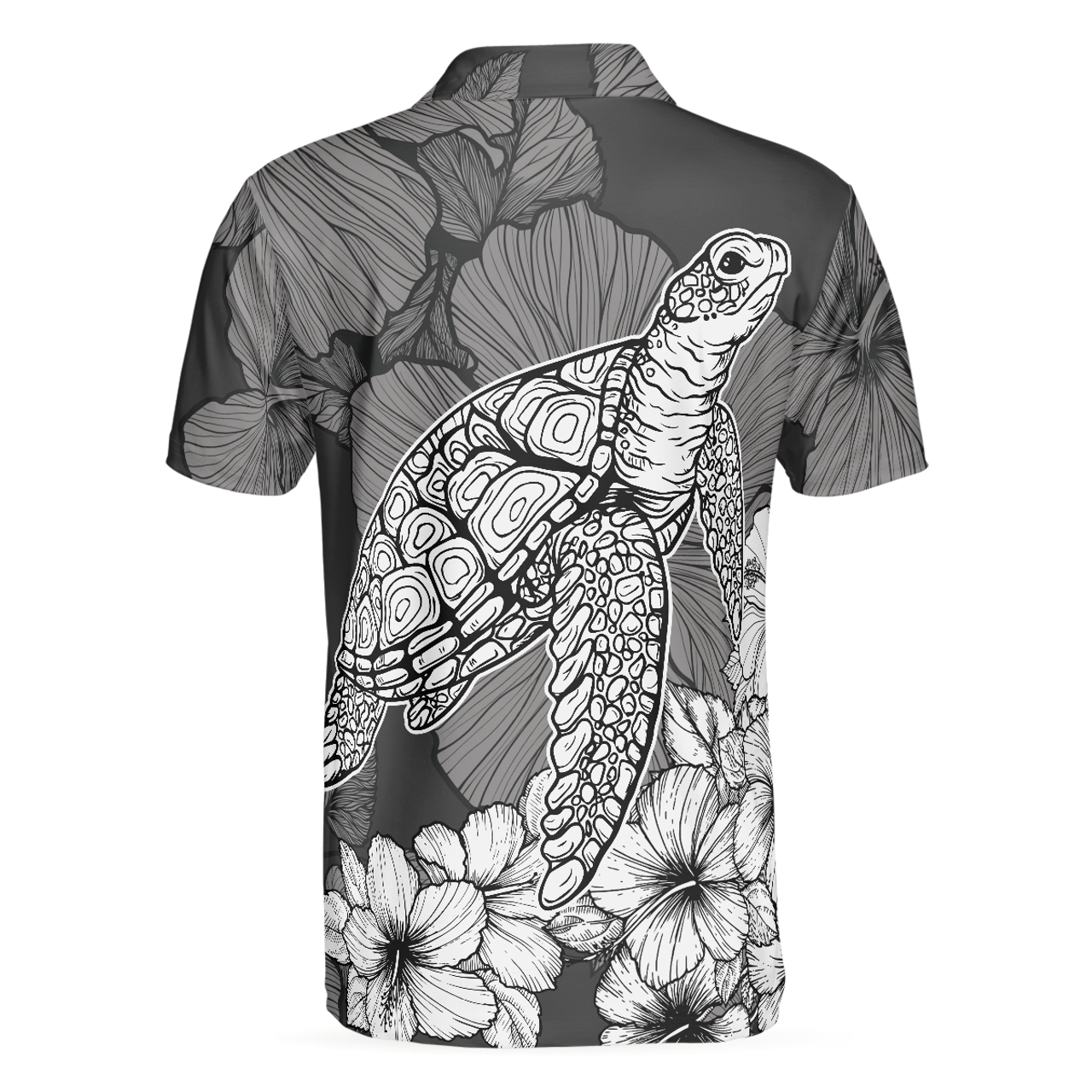 Hibiscus Turtle Shirt For Men Polo Shirt, Sea Turtle Polo Shirt For Men, Hibiscus Floral Shirt Design, Best Gift For Men