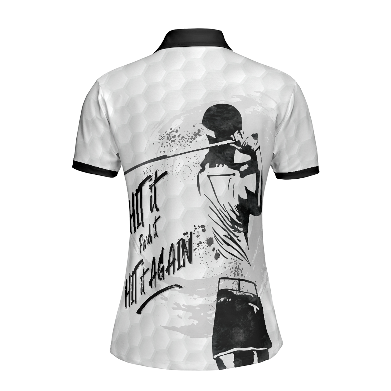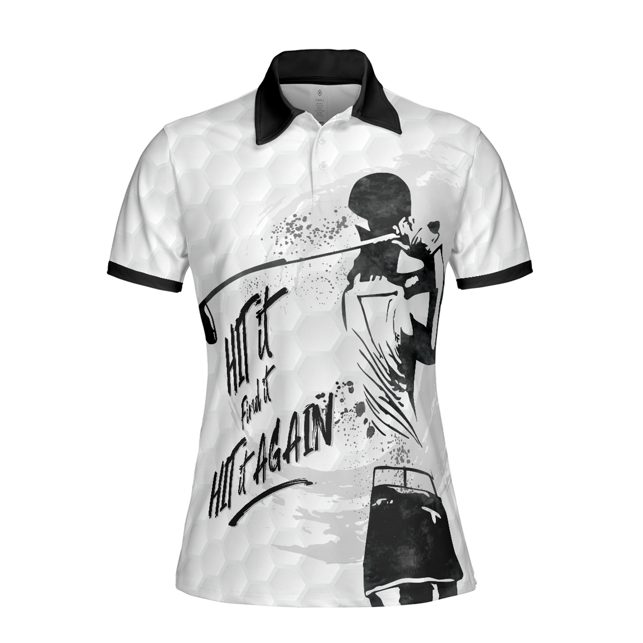 Hit It Find It Hit It Again Short Sleeve Woman Polo Shirt, Black And White Golf Shirt For Ladies, Cool Female Golf Gift