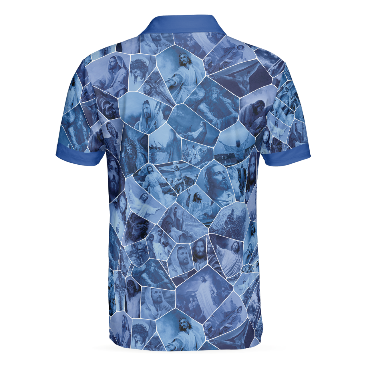 Holy Blue Stained Glass Polo Shirt, Blue Jesus Gallery Polo Shirt, Best Christian Shirt For Men
