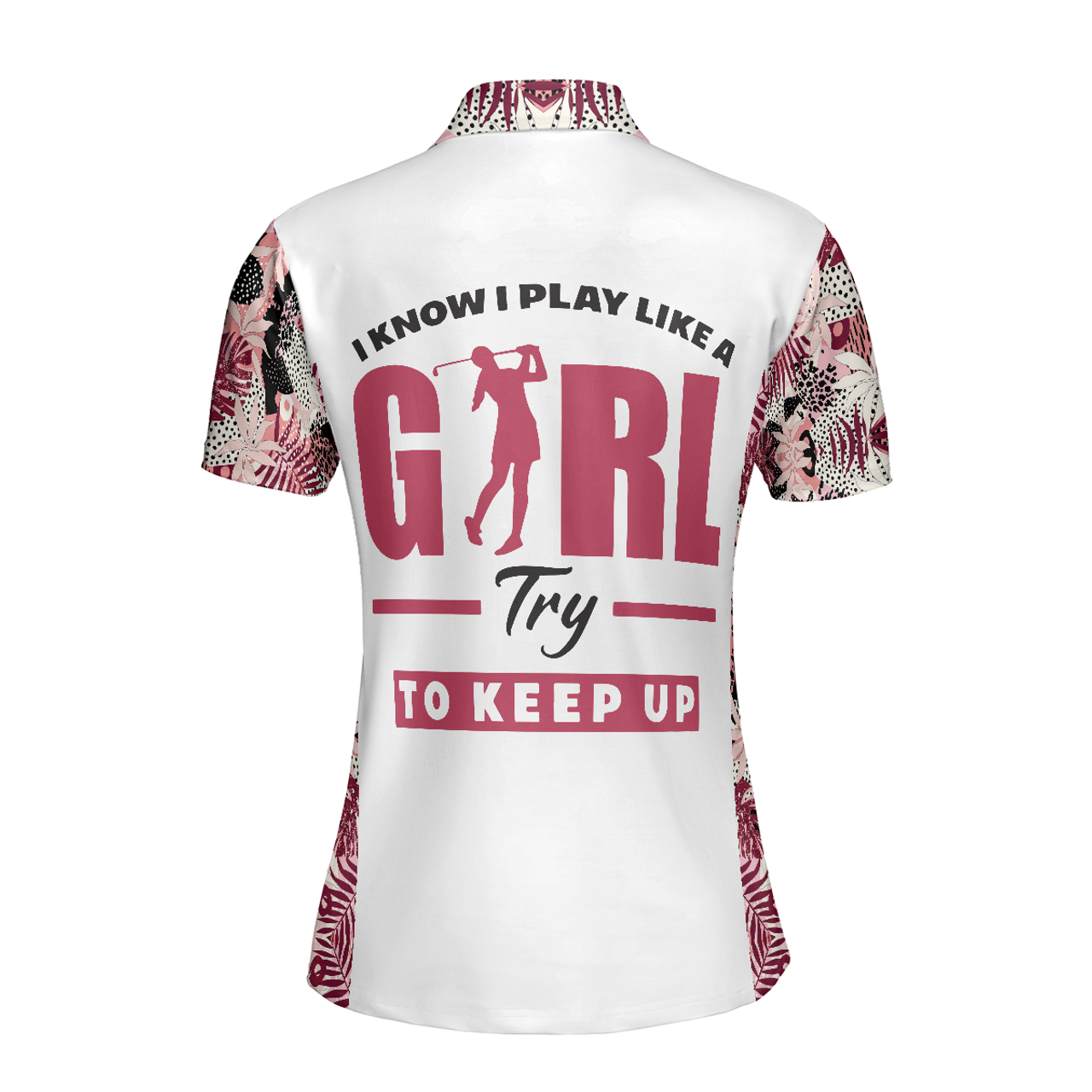 I Golf Like A Girl Try To Keep Up Flower Seamless Pattern Short Sleeve Women Polo Shirt, Golf Shirt For Ladies, Unique Female Golf Gift