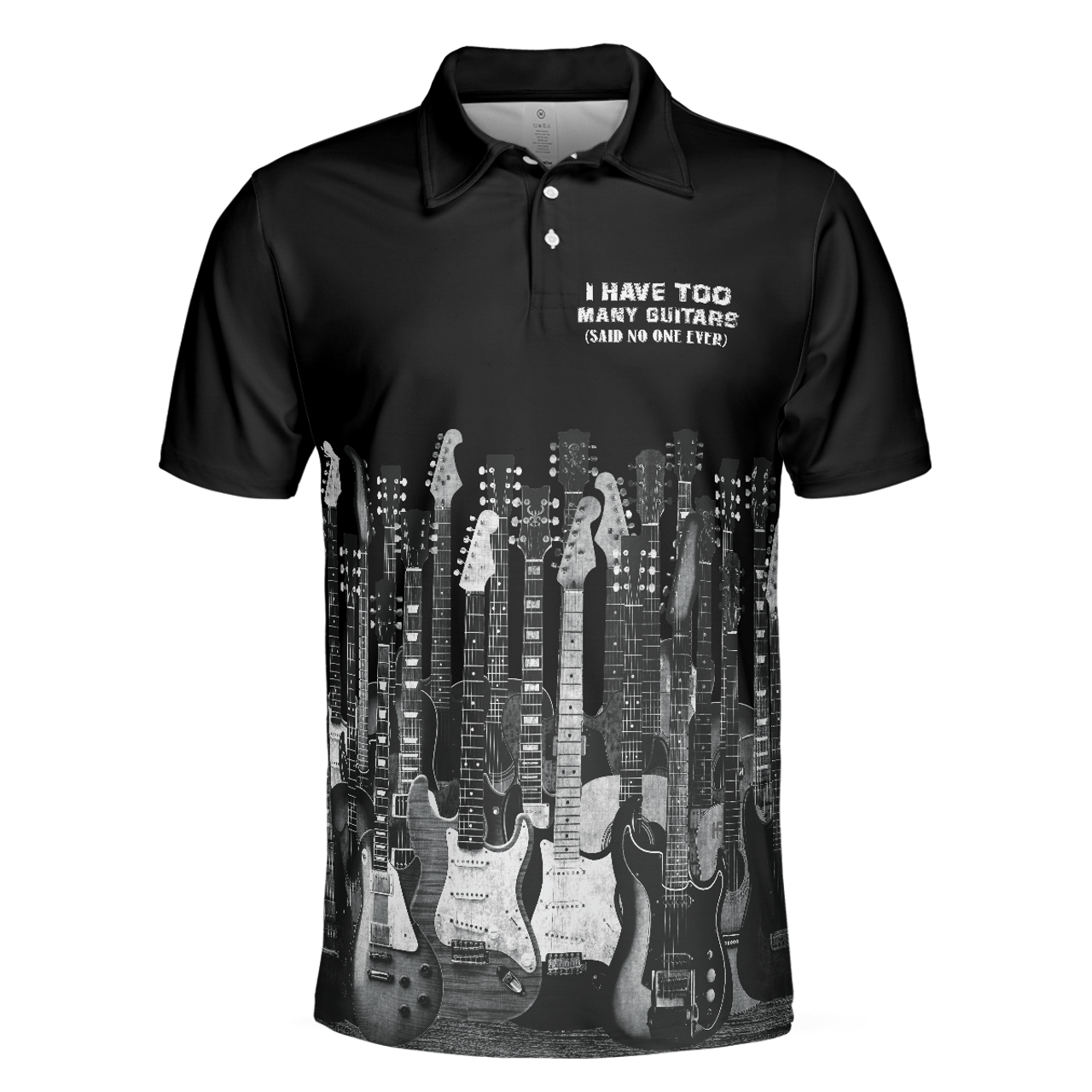 I Have Too Many Guitars Black Short Sleeve Polo Shirt, Guitarist Polo Shirt, Best Guitar Shirt For Men