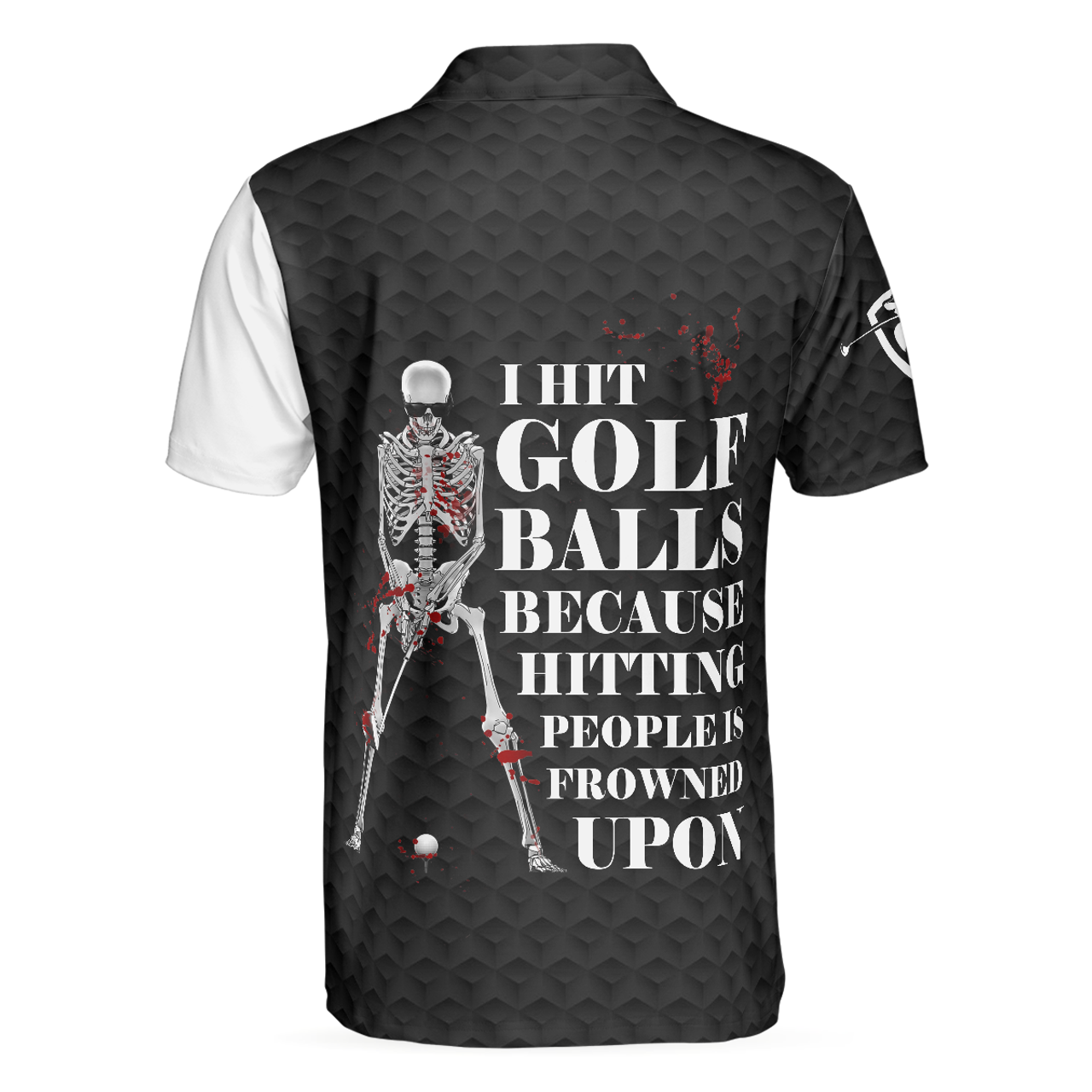 I Hit Golf Ball Polo Shirt, Black And White Golf Shirt Design With Sayings, Scary Skeleton Golf Shirt, Best Gift For Men