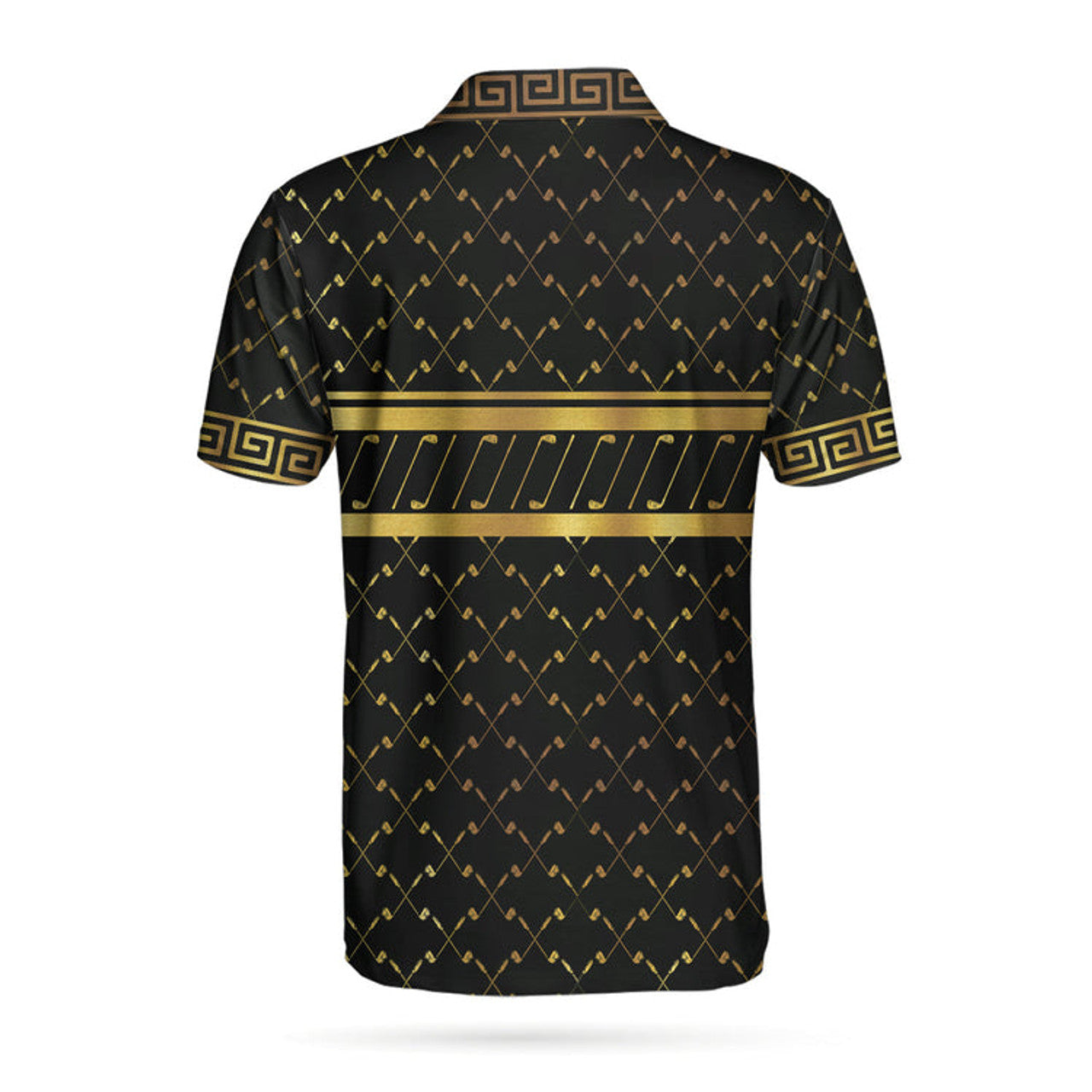 I Need My Daily Dose Of Iron Black & Gold Polo Shirt, Luxury Golden Greek Golf Shirt For Men
