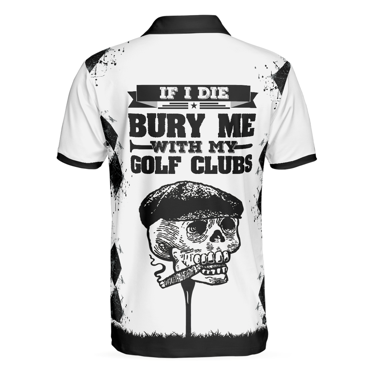If I Die Bury Me With My Golf Clubs Skull Golf Polo Shirt, Skeleton Golf Player Polo Shirt, Best Golf Shirt For Men