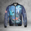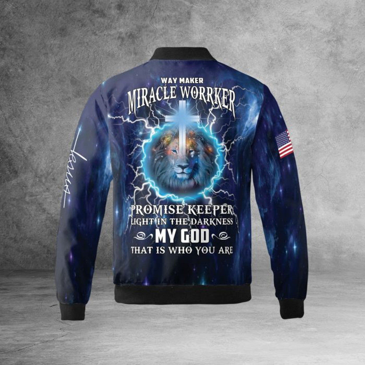 Jesus And Lion One Nation Under God Galaxy Fleece Bomber Jacket