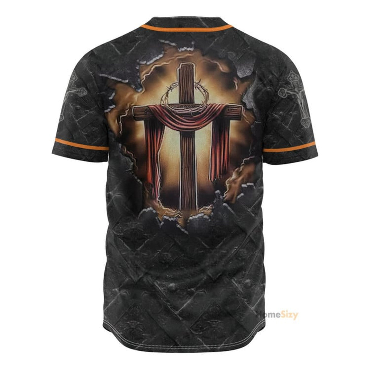 Inspirational Cross Motif Black Baseball Jersey