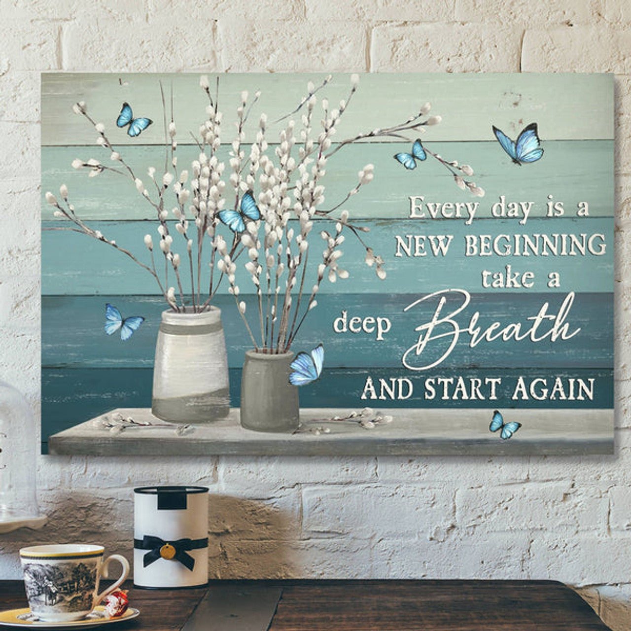 Jesus God Horizontal Canvas Prints - God Wall Art - Every Day Is A New Beginning - Blue Butterfly