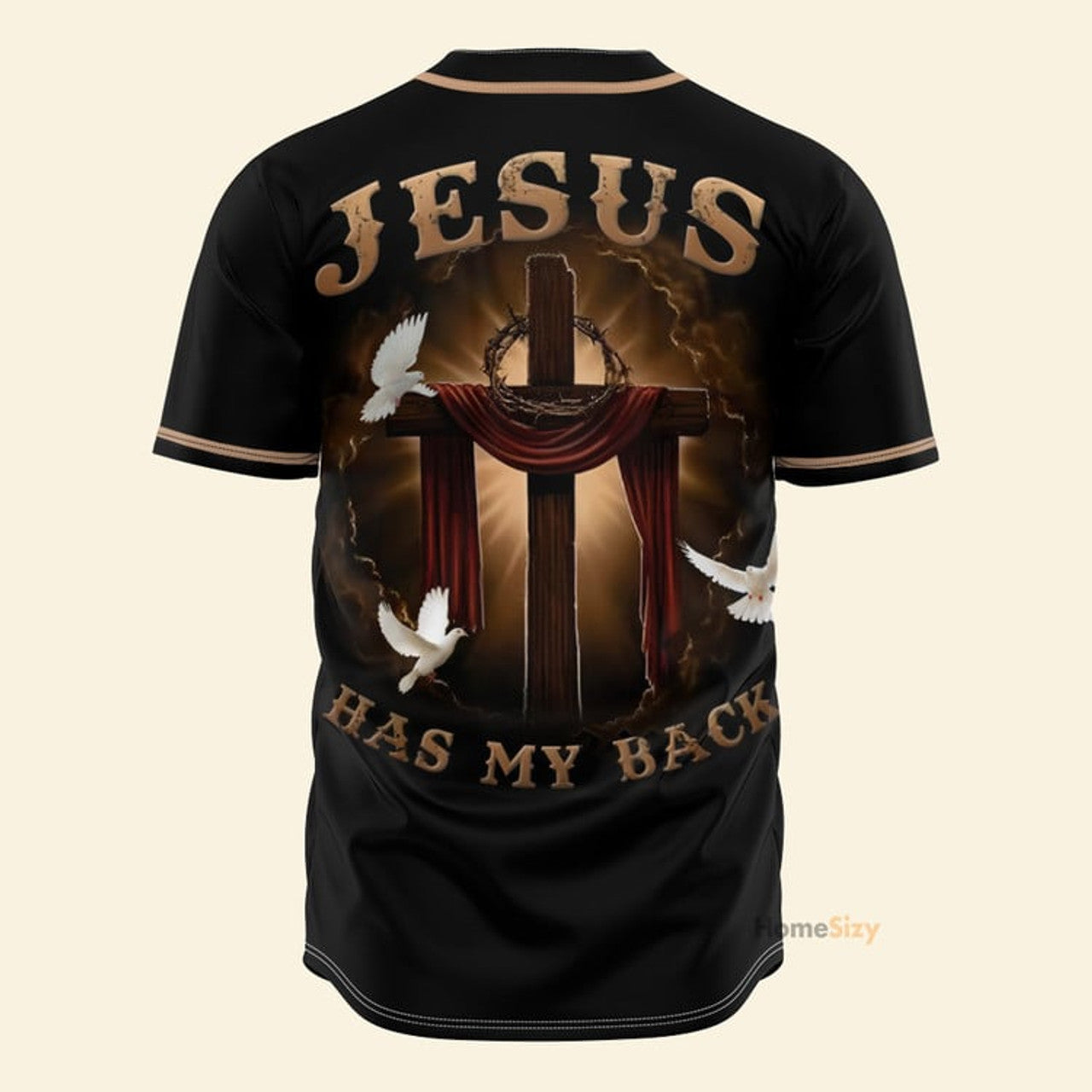 Jesus Has My Back Black And Golden - Baseball Jersey