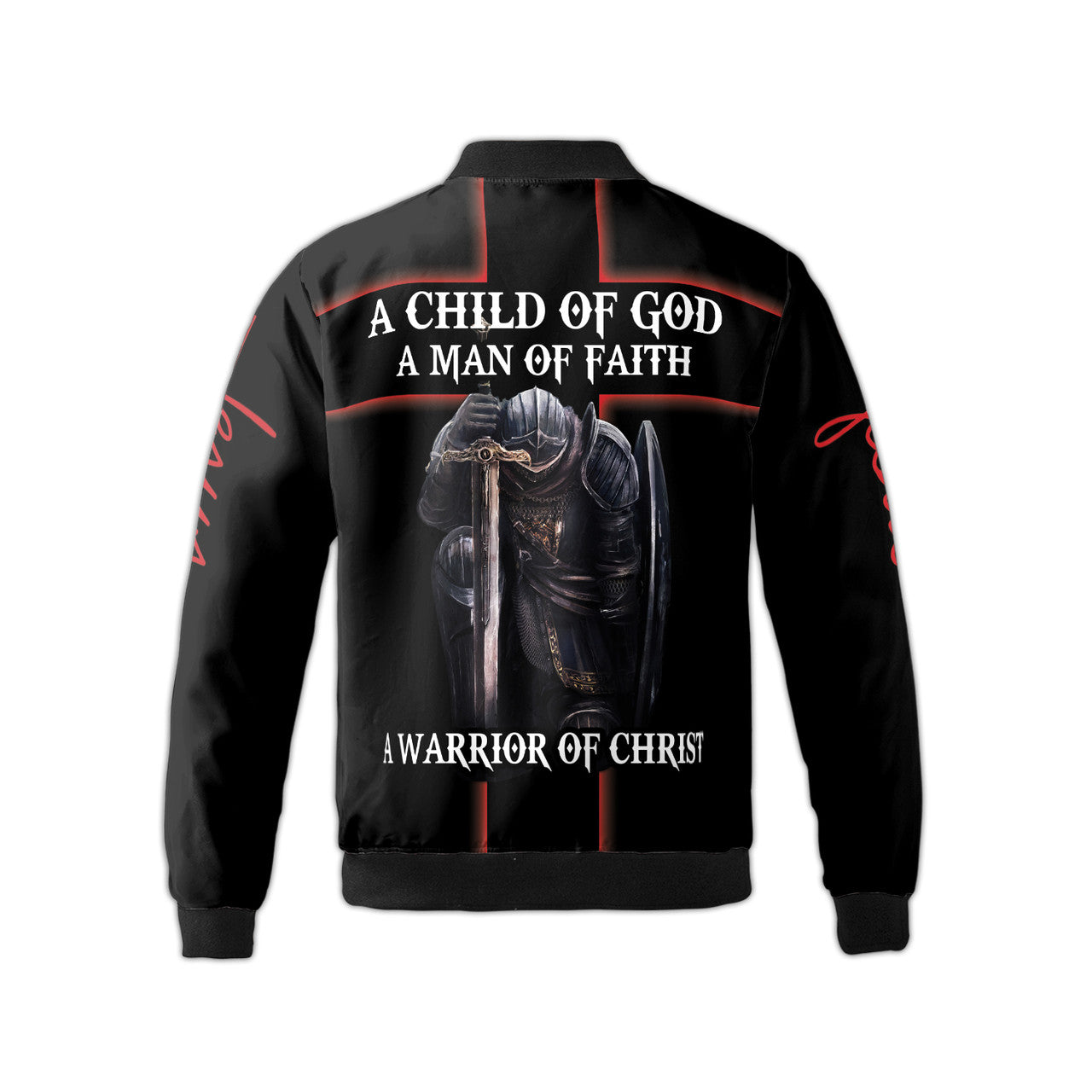 Jesus Warrior A Child of God A Man Of Faith A Warrior Of Christ Fleece Bomber Jacket