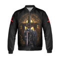 Jesus's Lion Templar Knight Child Of God Wooden Cross Crowd Of Thorn Fleece Bomber Jacket