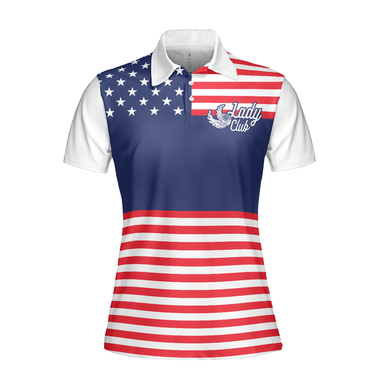 Lady Squad America Flag Golf Shirt, Short Sleeve Women Polo Shirt