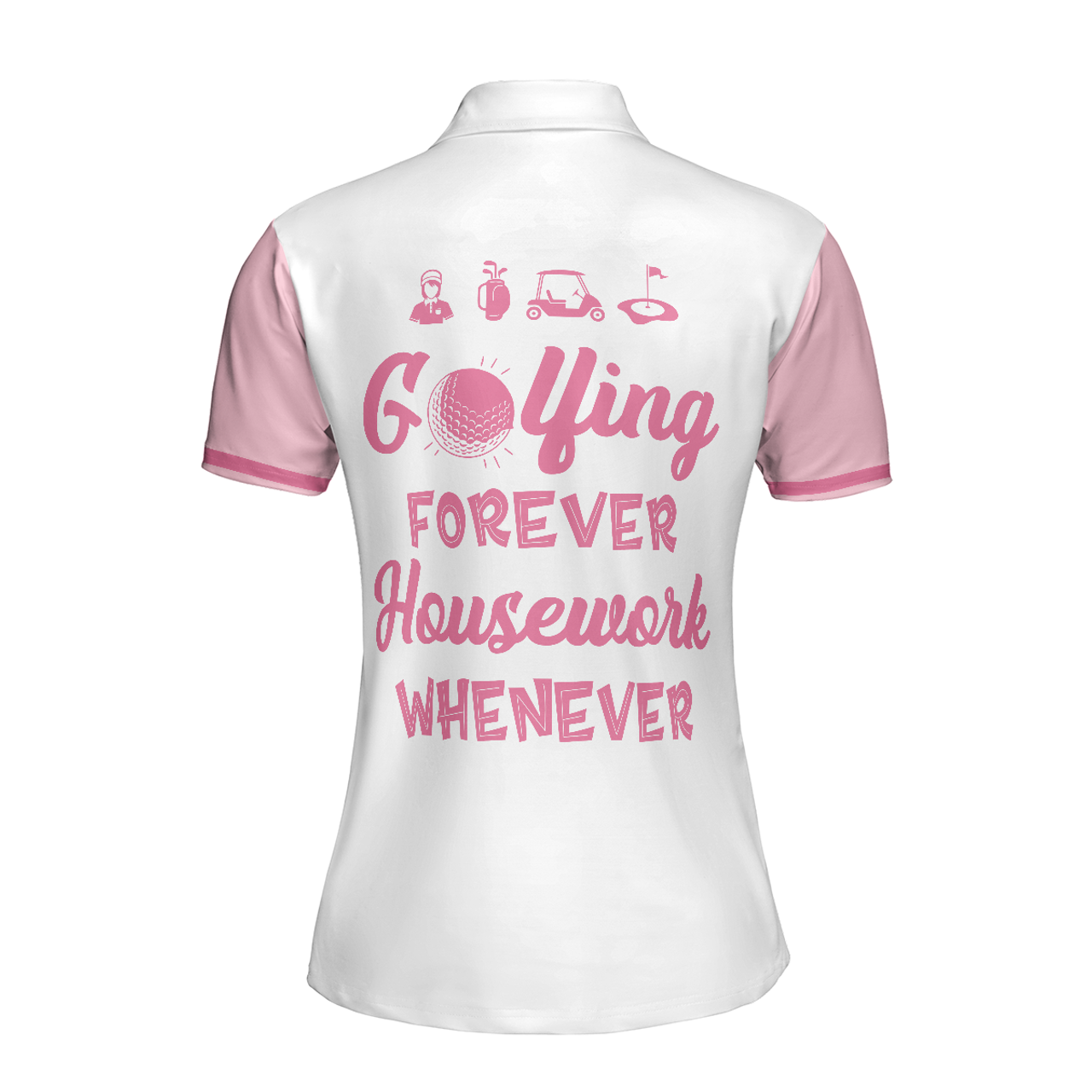 Leopard Argyle Style Golf Short Sleeve Women Polo Shirt, Golfing Forever Housework Whenever Polo Shirt, Unique Female Golf Gift, Best Gift For Golfers
