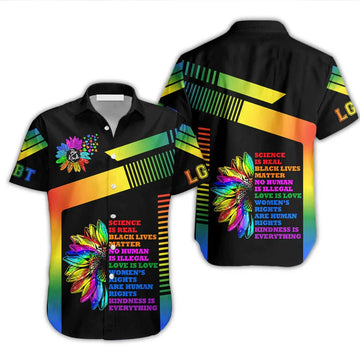 LGBT Aloha Hawaiian Shirts For Summer, Sunflower Trans Pride Be Kind Rainbow Colorful LGBT Hawaiian Shirts