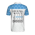 Life Is Full Of Important Choices Golf Polo Shirt, White Golf Texture Blue Argyle Pattern Polo Shirt, Best Golf Shirt For Men