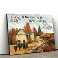 Life Is Too Short To Be Anything But Happy Canvas Wall Art - Christian Canvas Wall Decor - Bible Verse Wall Art Canvas - Farmer Gift
