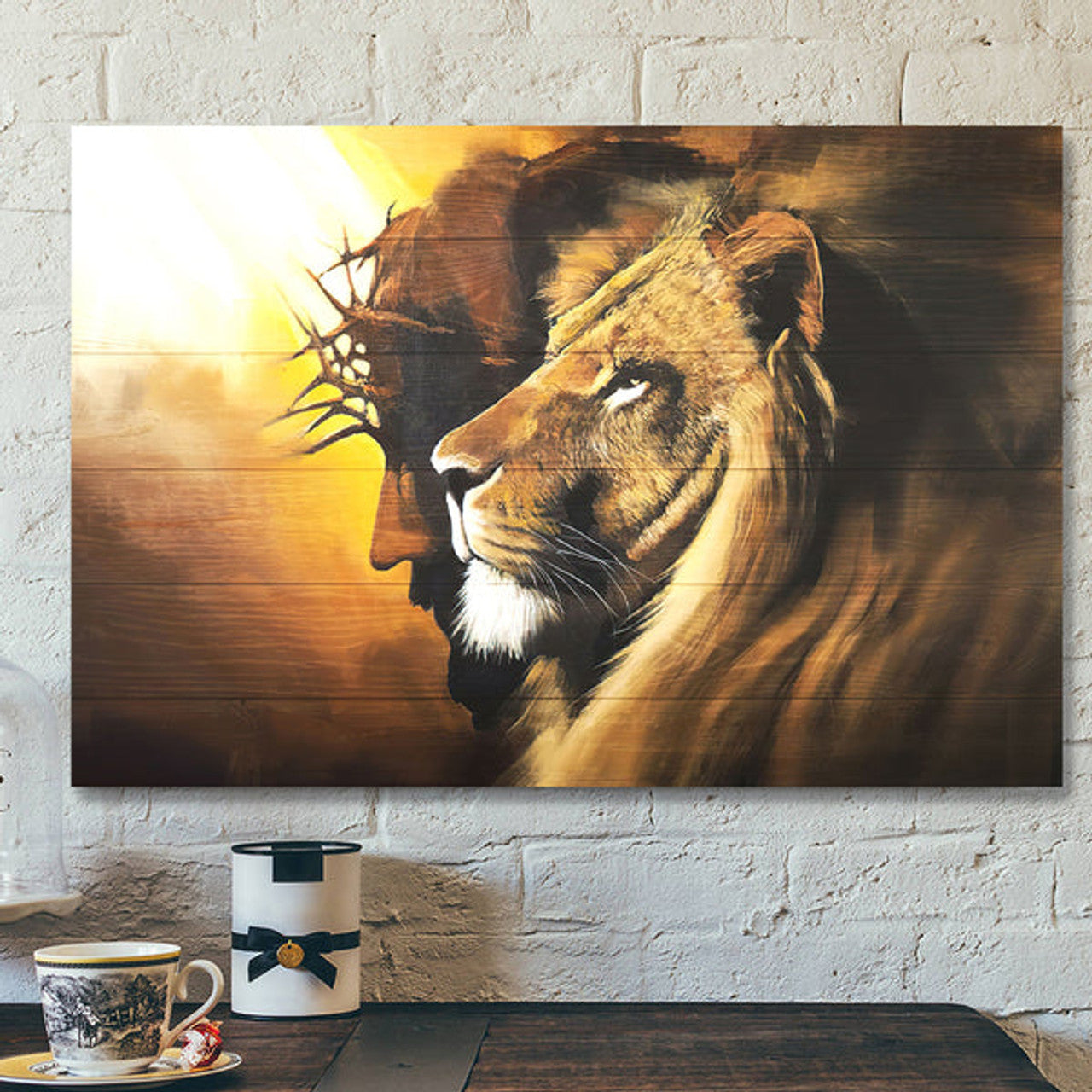 Lion Of Judah Wall Art Canvas - Half Jesus Half Lion - Jesus Lion Canvas Poster - Christian Canvas Art