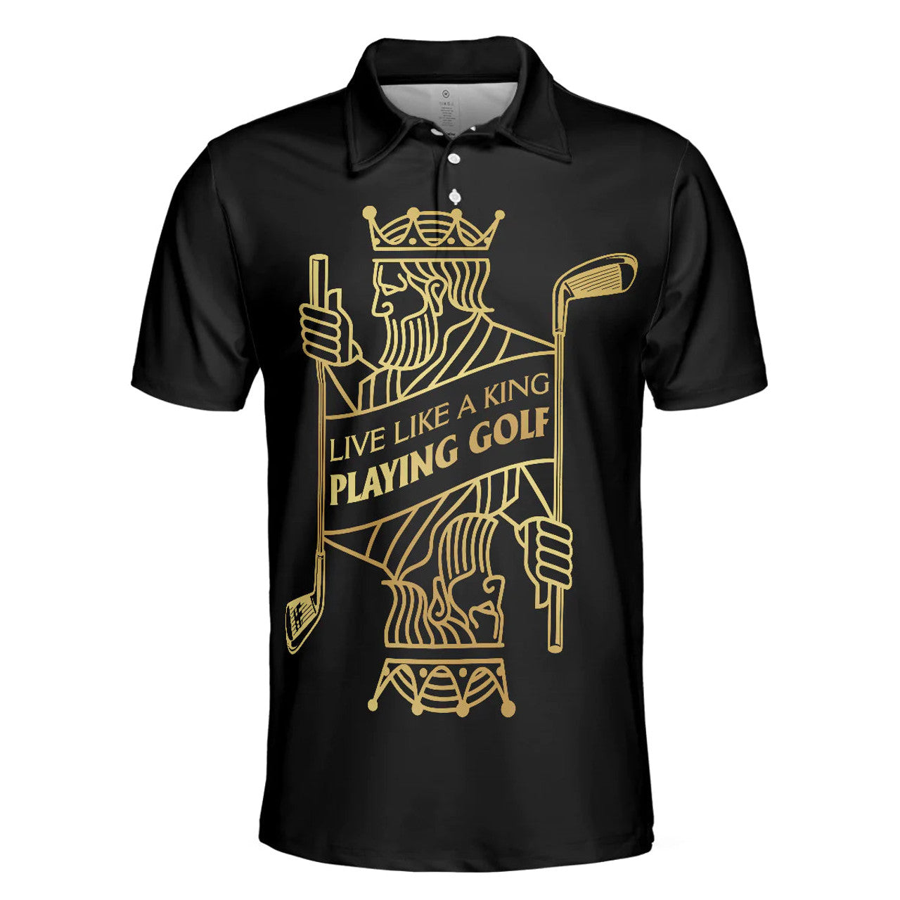 Live Like A King Playing Golf Black And Gold Polo Shirt, Luxury Playing Card Poker Polo Shirt, Best Golf Shirt For Men