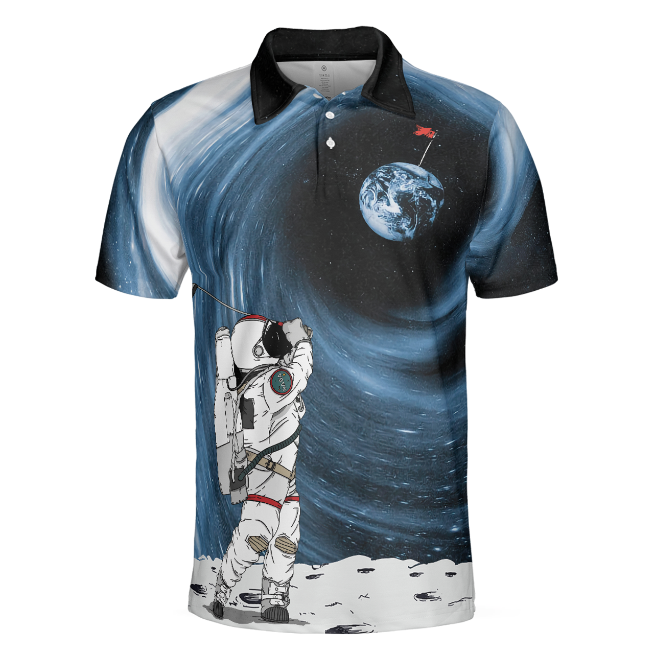 Men Polo Shirt - Astronaut Golfing Outer Space Black Golf Polo Shirt Men Polo Shirt - Gift For Golfer - Hole 404 Oops Men Polo Shirt