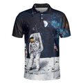 Men Polo Shirt - Astronaut Moon Golf Men Polo Shirt, Short Sleeve Polo Shirt - Gift For Golfer - American Flag Men Polo Shirt