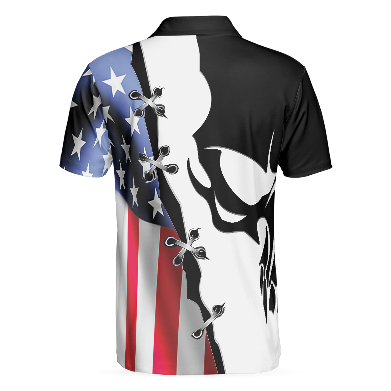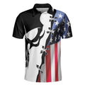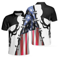 Men Polo Shirt - Black Skull Billiards Short Sleeve Polo Shirt, American Flag Polo Shirt, Best Billiards Shirt For Men