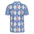 Men Polo Shirt - Blue Hot Golf Short Sleeve Polo Shirt, Argyle Pattern Fun Golf Shirt For Men
