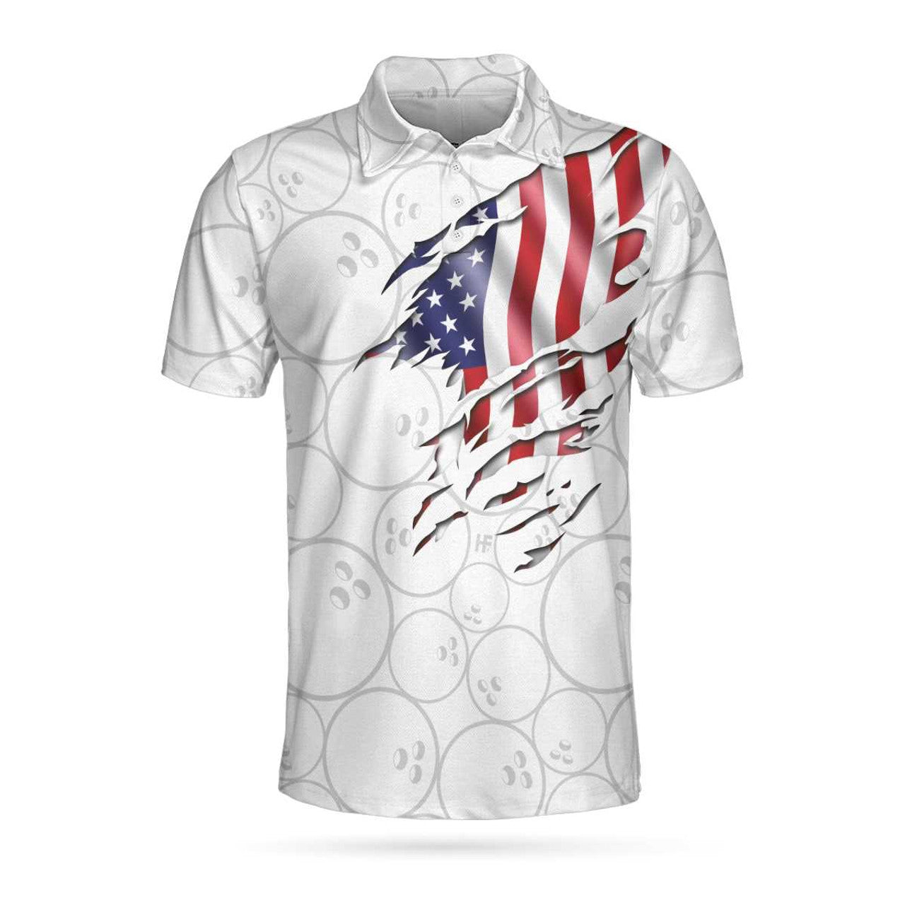 Men Polo Shirt - Bowling American Flag White Background Polo Shirt, American Flag Polo Shirt, Best Bowling Shirt For Men - Best Polo Shirt For Men