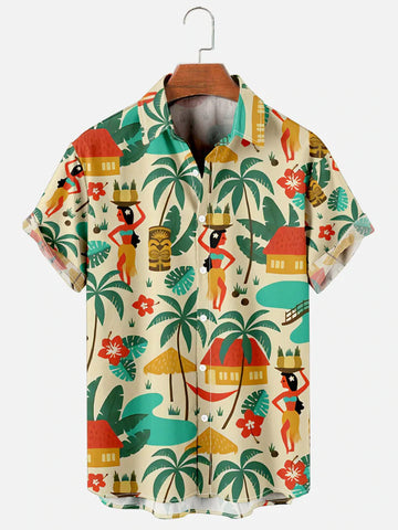 Mens Hawaiian Shirt Aloha Beach Retro Hippie Girl Hawaiian Short Sleeve Shirt