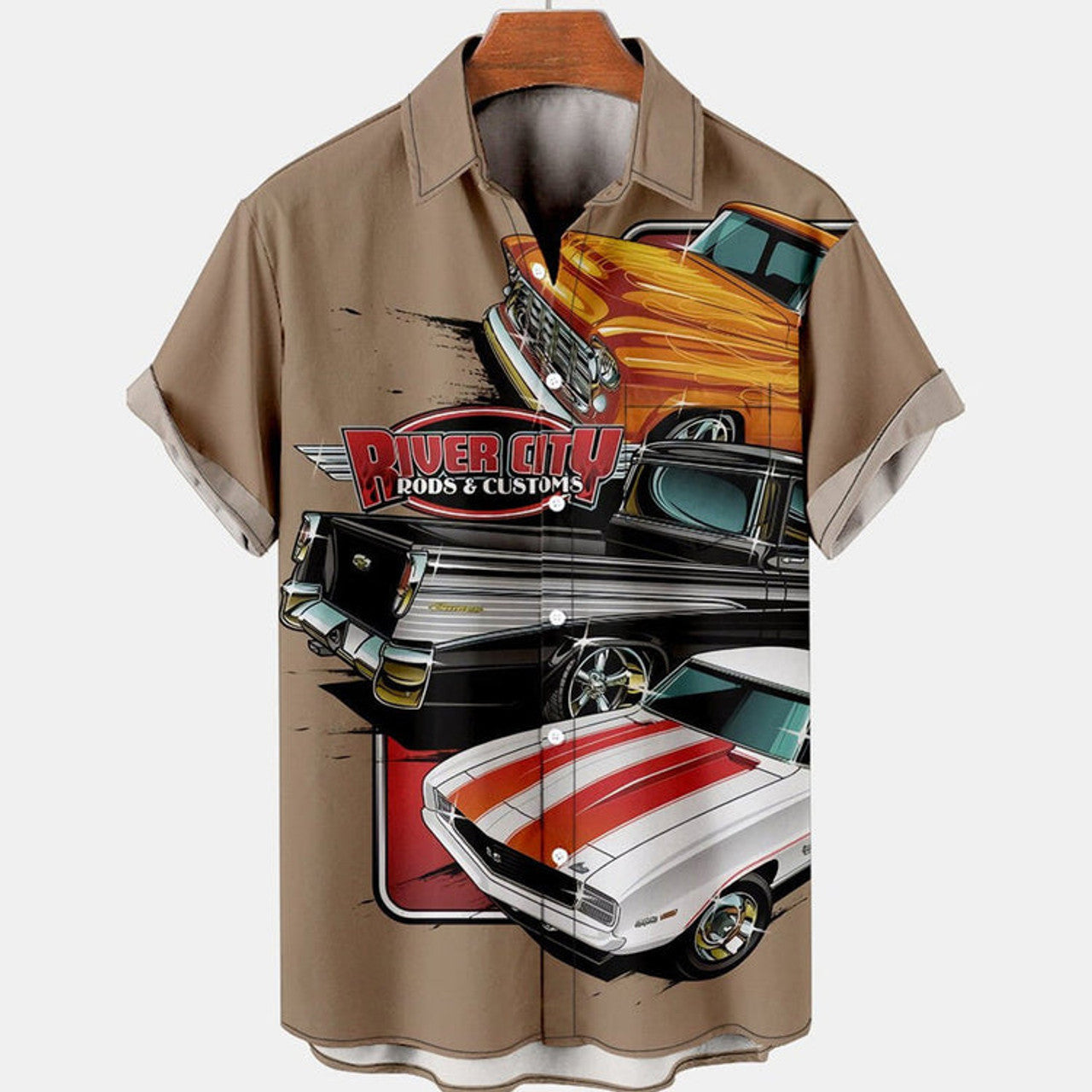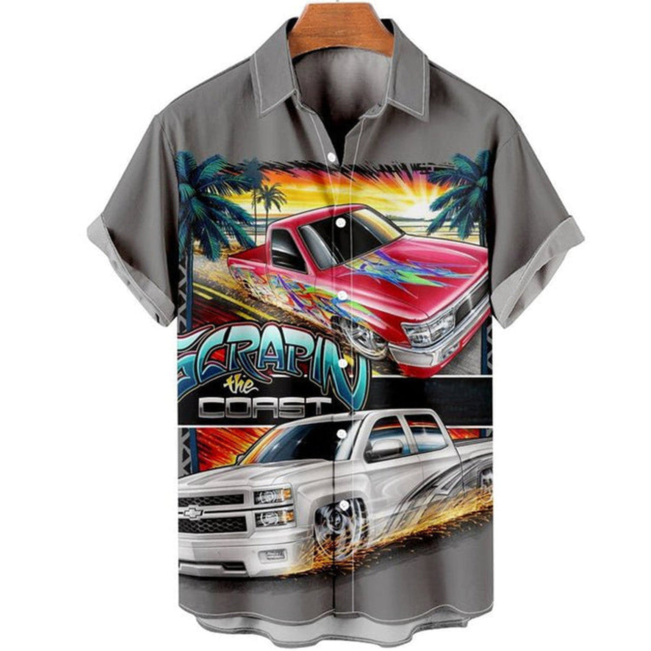 Men's Motorcycle Print Holiday Short Sleeve Hawaiian Shirts for men, Women