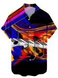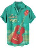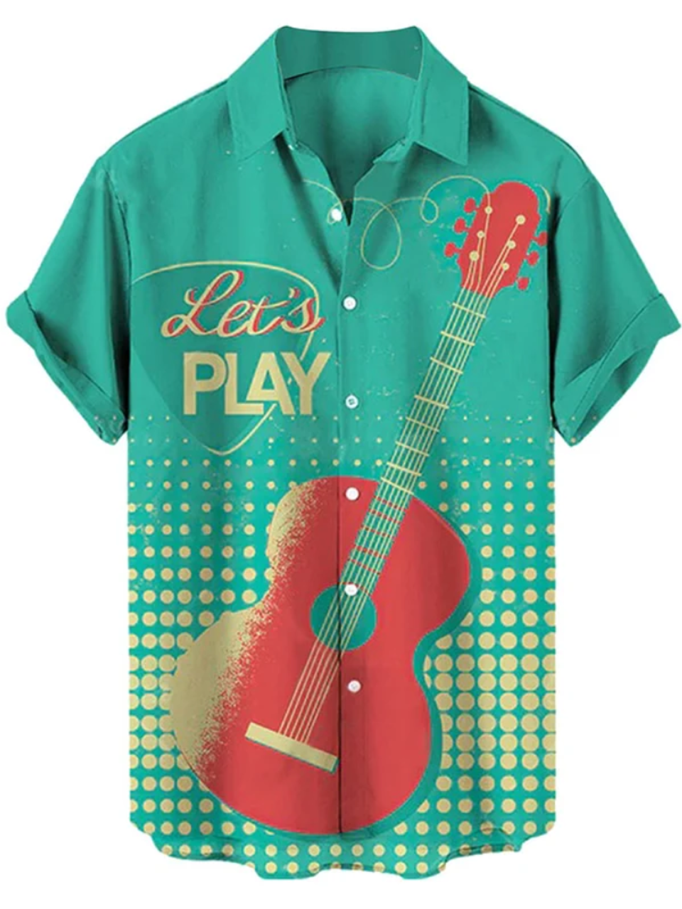 Men's Printed Cardigan Casual Lapel Short-sleeved hawaiian Shirt, Guitar hawaiian shirt, Summer Gift For Women, Men