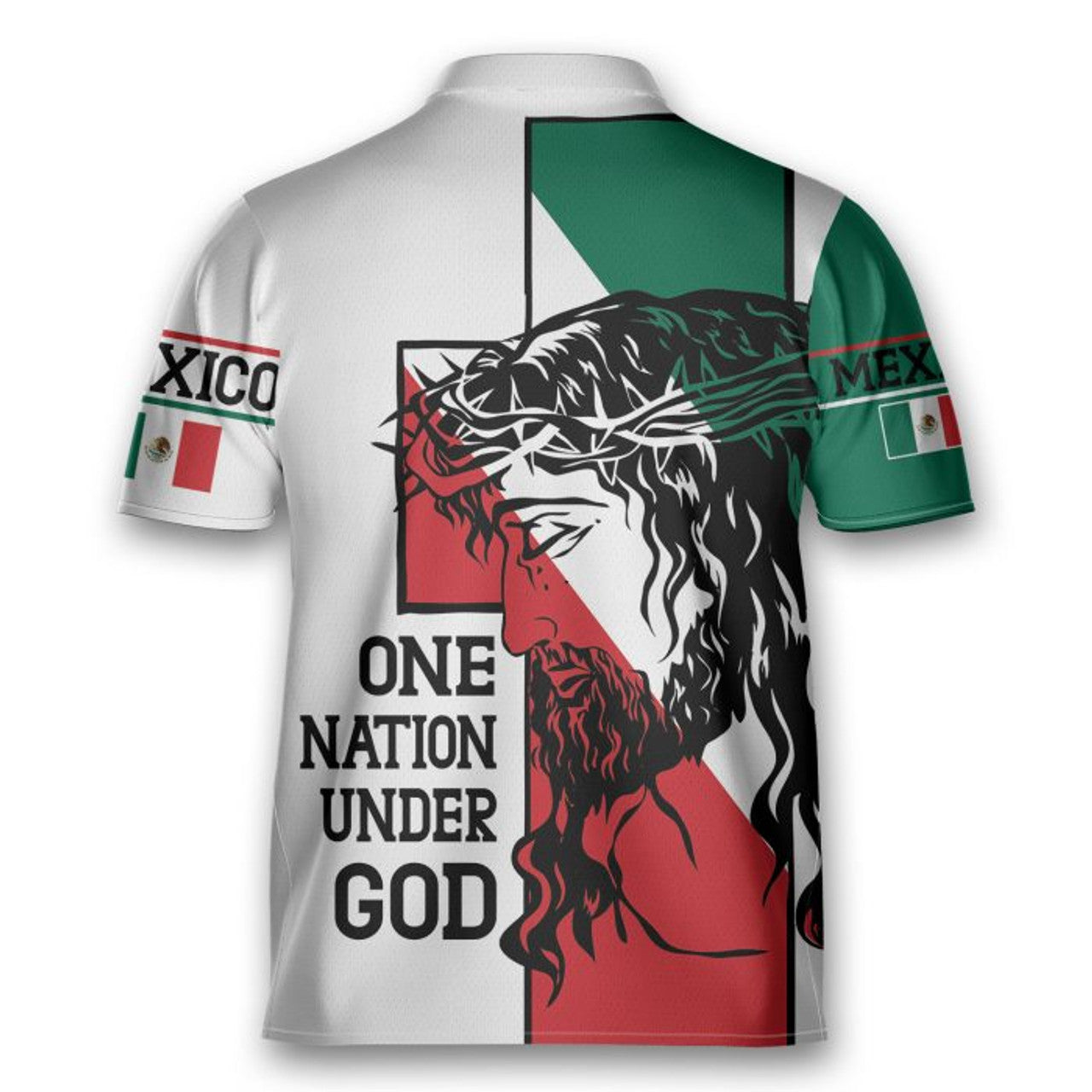 Mexico Jesus One Nation Under God Mexican Flag Bowling Jersey Polo