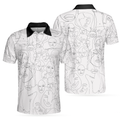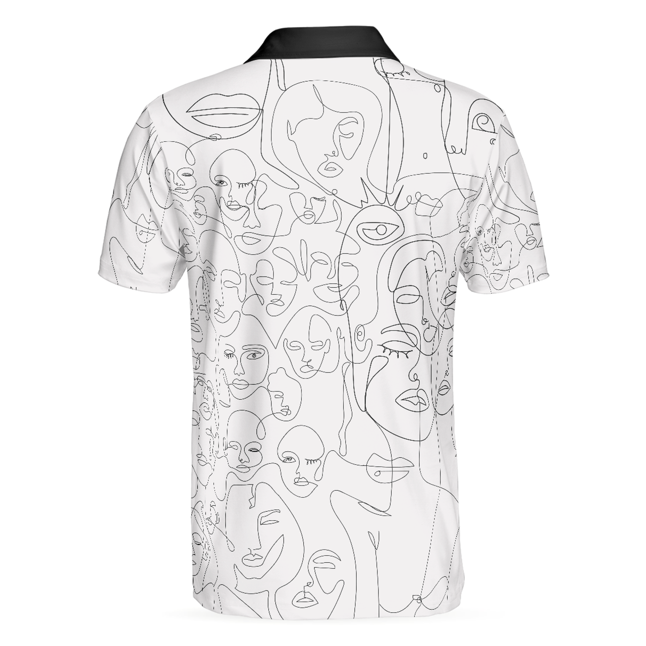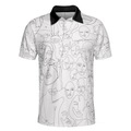 Multiple Face One Line Art White Version Polo Shirt, Black And White Abstract Art Polo Shirt For Men