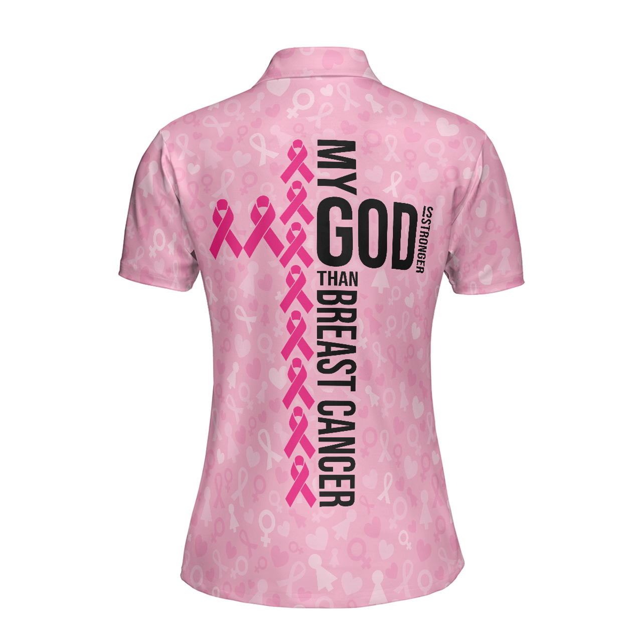 My God Is Stronger Than Cancer Awareness Short Sleeve Women Polo Shirt