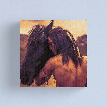 Native American Man Holding Horse Vintage Canvas Prints
