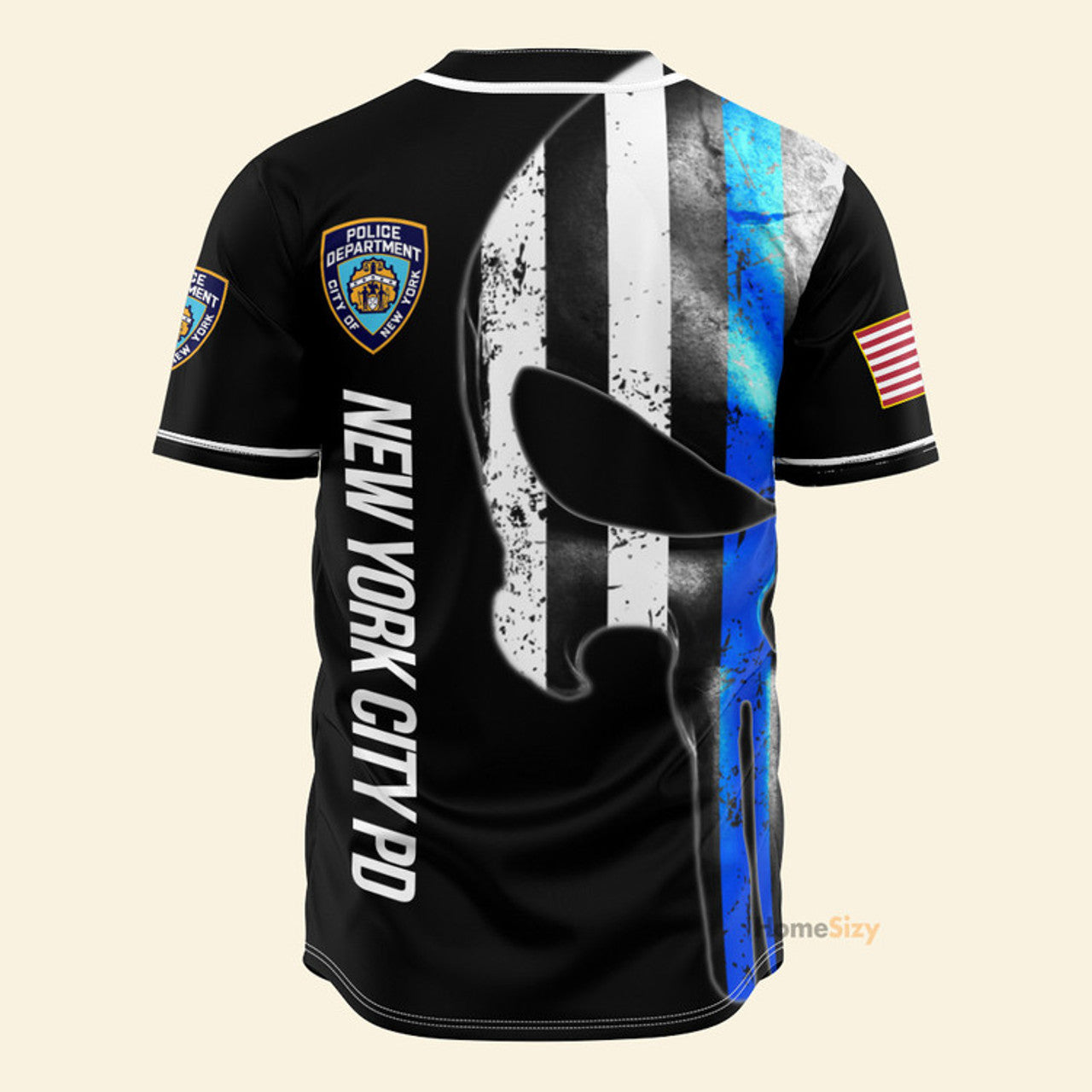 New York City Police Department Skull Blue Black - Baseball Jersey