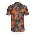 Orange Camouflage Golf Polo Shirt, Golfer Silhouette Pattern Polo Shirt, Camo Golf Shirt For Men