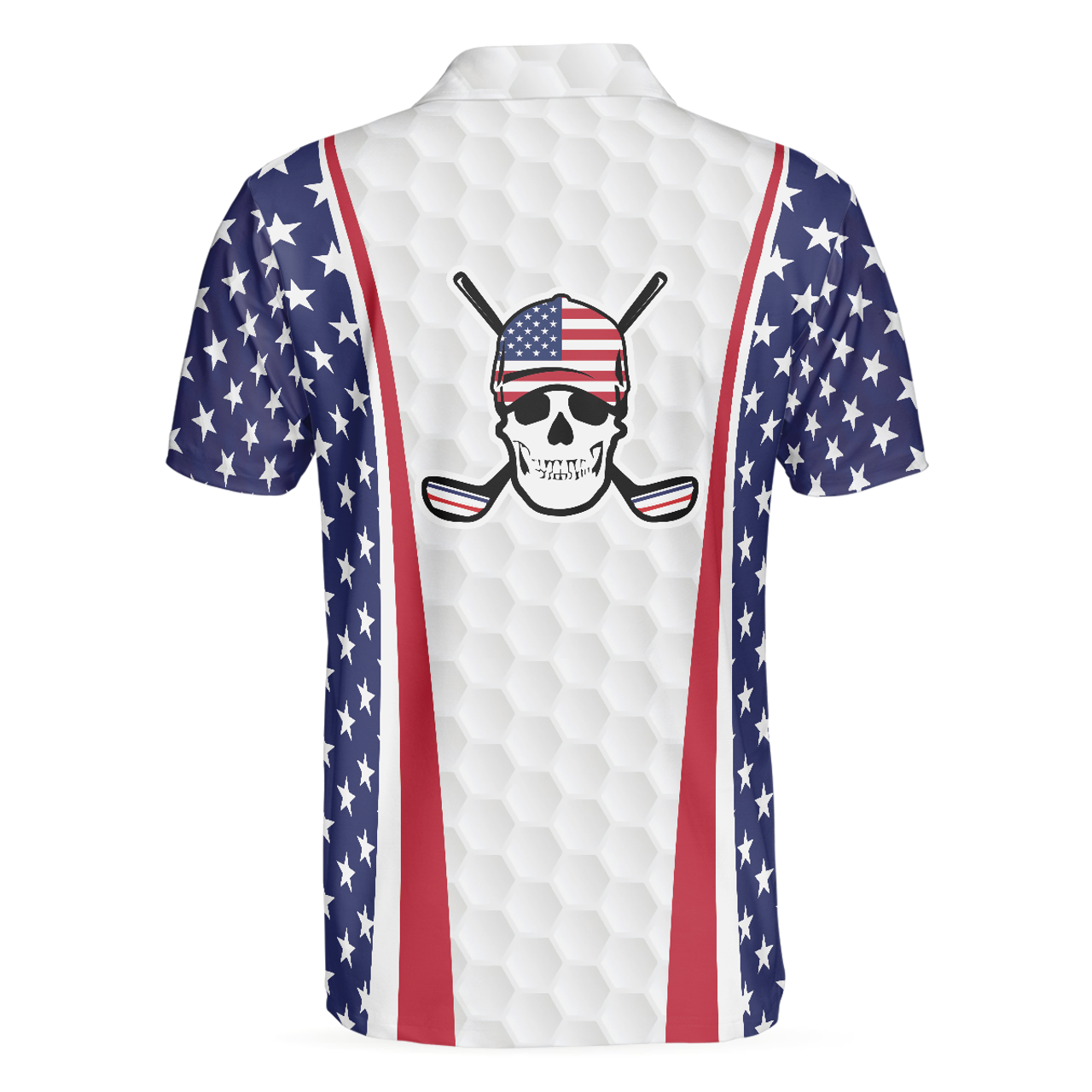 Patriotic Golf Texture Short Sleeve Skull USA Flag Golf Men Polo Shirt, American Flag Polo Shirt, Best Golf Shirt For Men