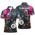Personalized 8 Ball Pool Grunge Colorful Men Billiard Polo Shirts, Custom Billiards Pool Shirts