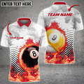 Personalized Billiards White Fire Flame Smoke Multicolor Option, Personalized Name Team Polo Shirt