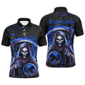 Personalized Bowling And Pins Grim Reaper Customized Name, Team Name 3D Polo Shirt For Men