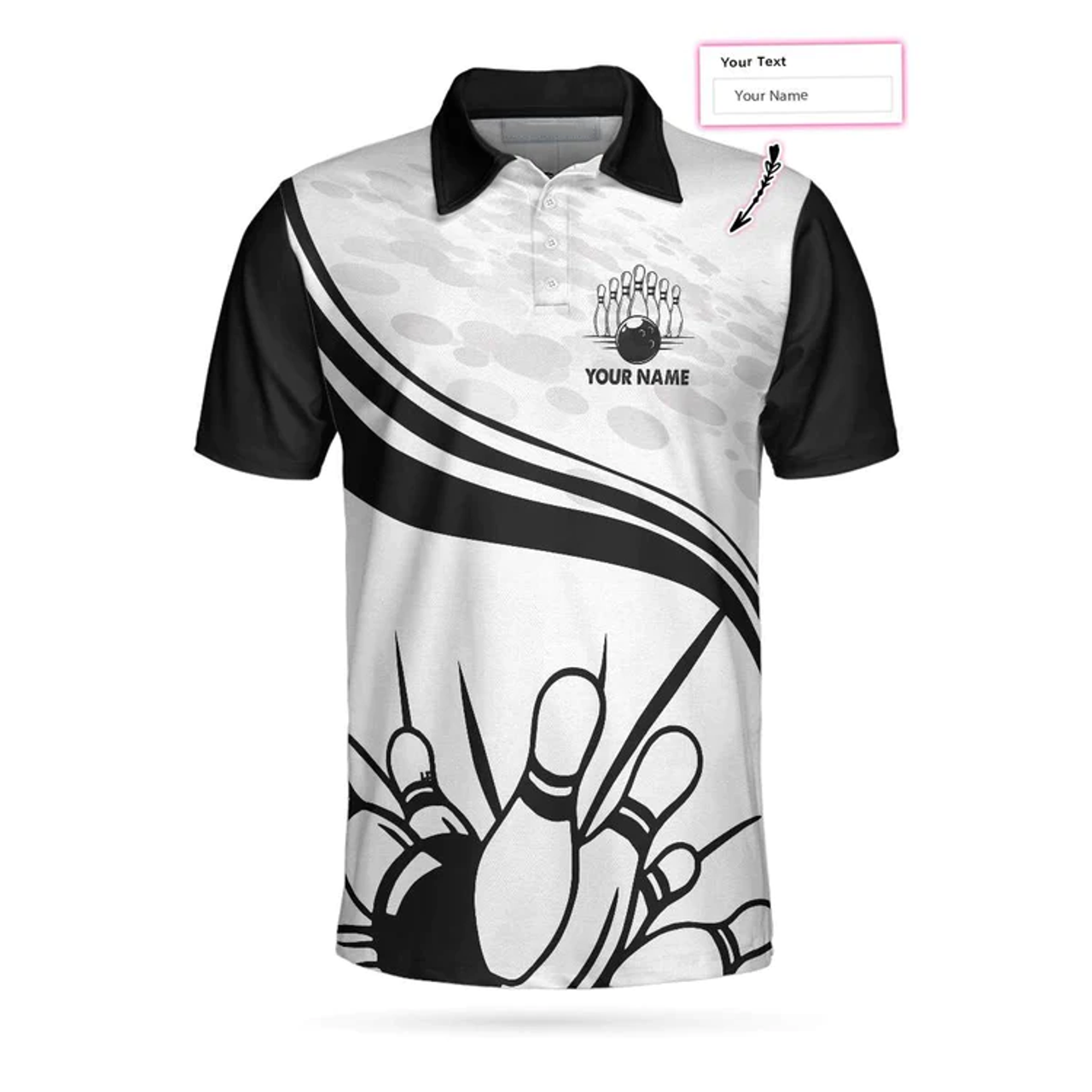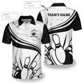 Personalized Bowling In Black Custom Polo Shirt, Black And White Custom Bowling Shirt For Bowling Players