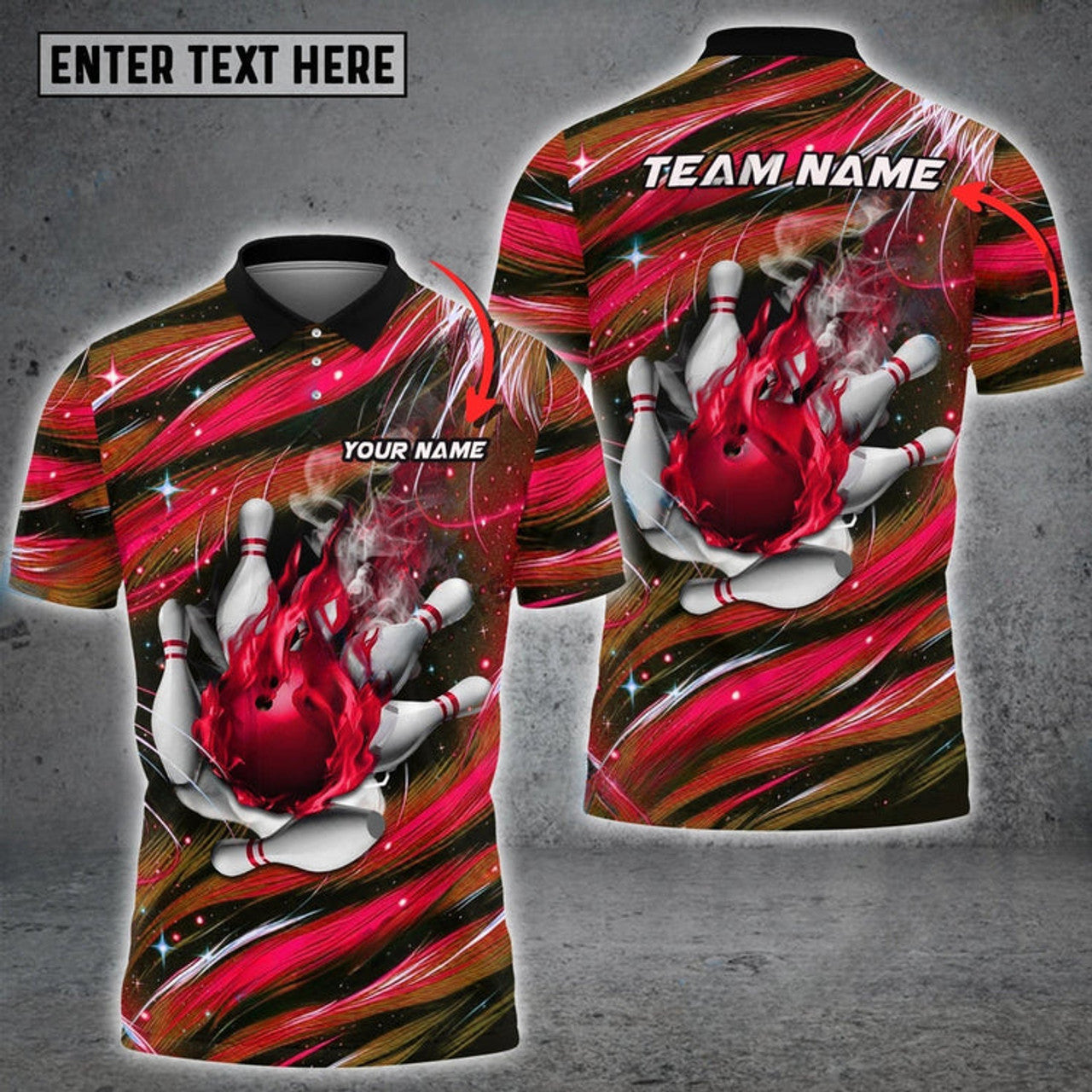 Personalized Bowling & Pins Colorful Silk Thread Premium Multicolor Option Customized Name, Team Name 3D Polo Shirt