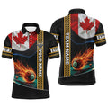 Personalized Canada Flag Flaming 8 Ball Pool Men Polo Shirts, Patriotic Billiard Attire Jerseys