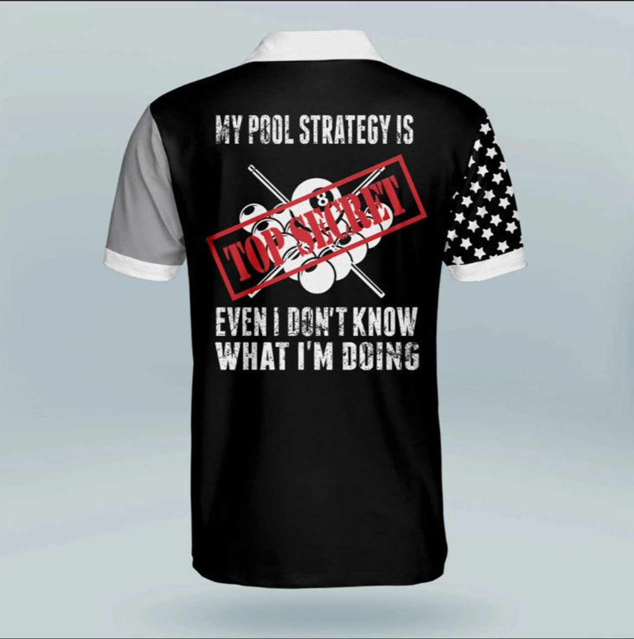 Personalized Funny My Pool Strategy is Top Secret Even billiard polo shirt, Pool shirt, Ball shirt, Gift for Billiard team player
