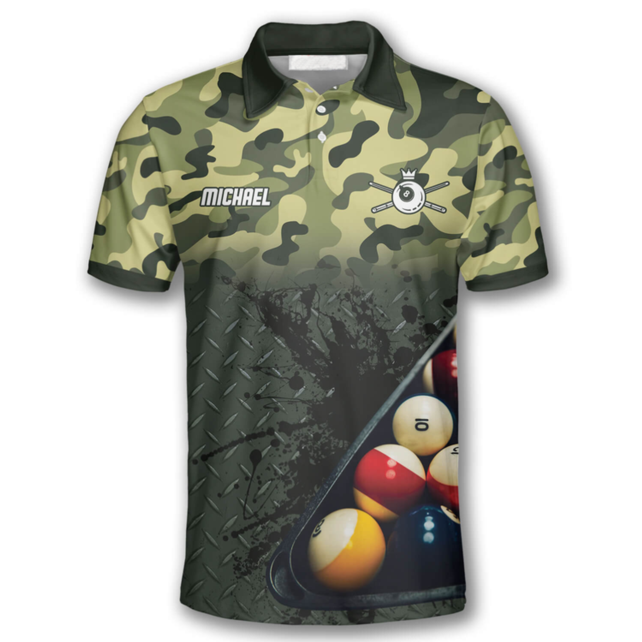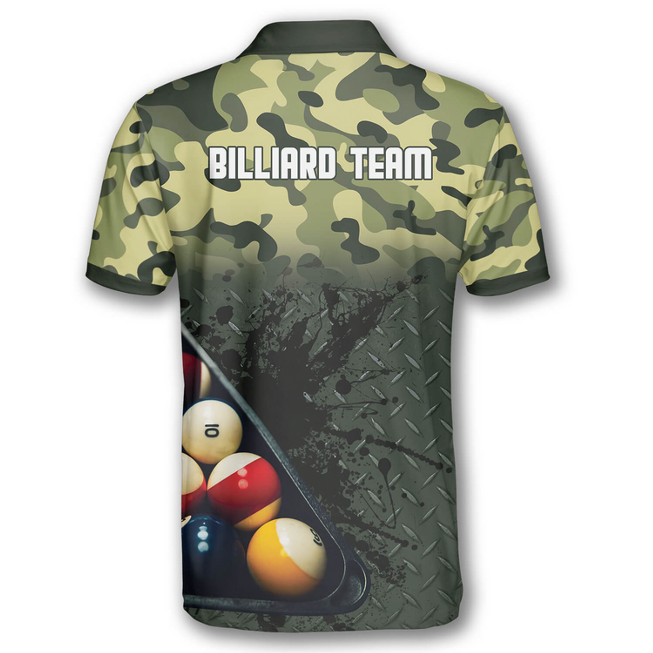 Personalized Green Camo Custom Billiard Shirts for Men, Billiard Polo Shirt, Gift for Team Billiard