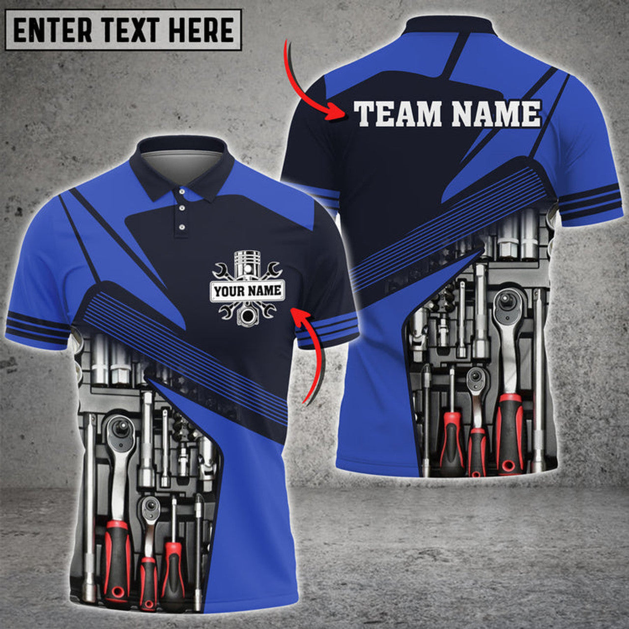 Personalized Mechanic Tool Custom Text Multi Color Printed 3D Polo Shirt, Mechanic Men Shirt
