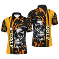 Personalized Mens golf polo shirts custom black and yellow skull golf top for mens, golfing gifts