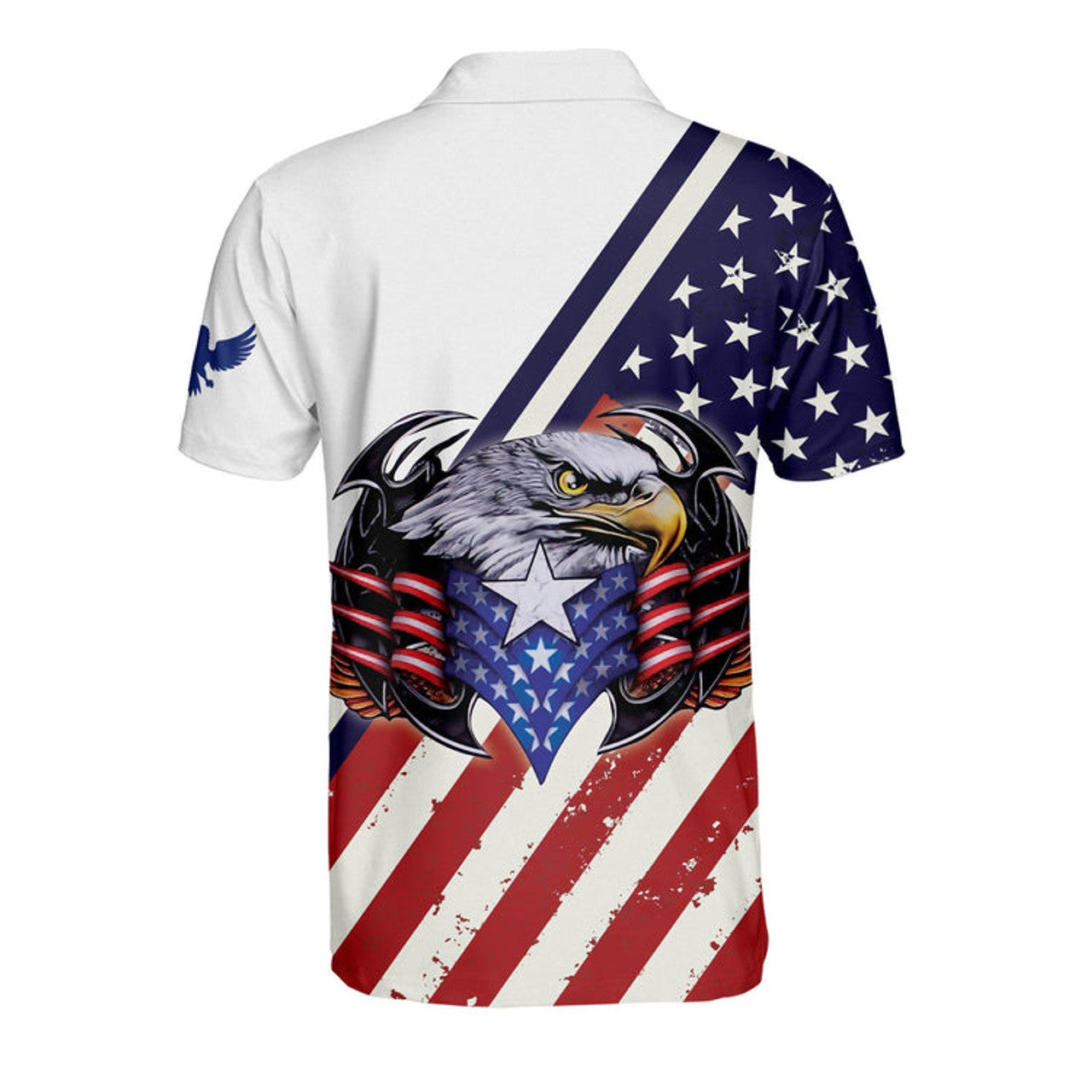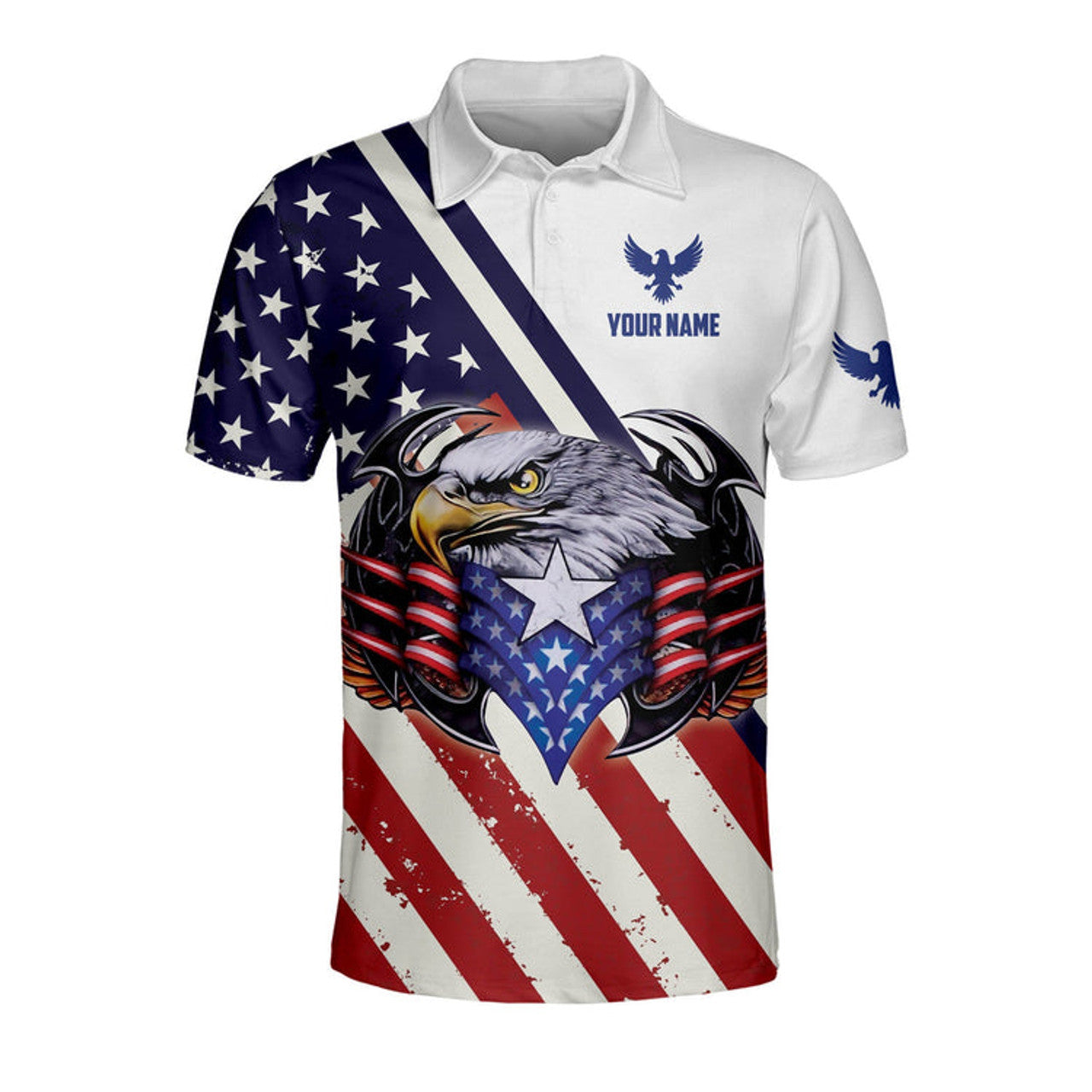 Personalized Name Eagle US Flag Patriotic Polo Shirt, Flag Shirt, Independence Shirt