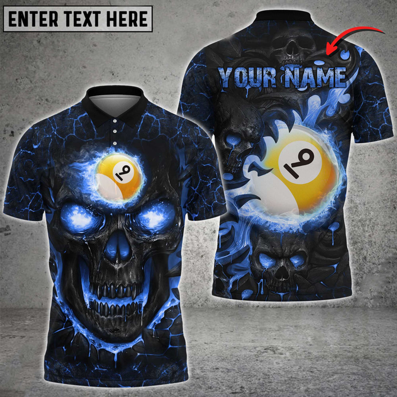 Personalized Name Team Billiards Ball 9 Skull Fire Polo Shirt, Billiard Skull Lover