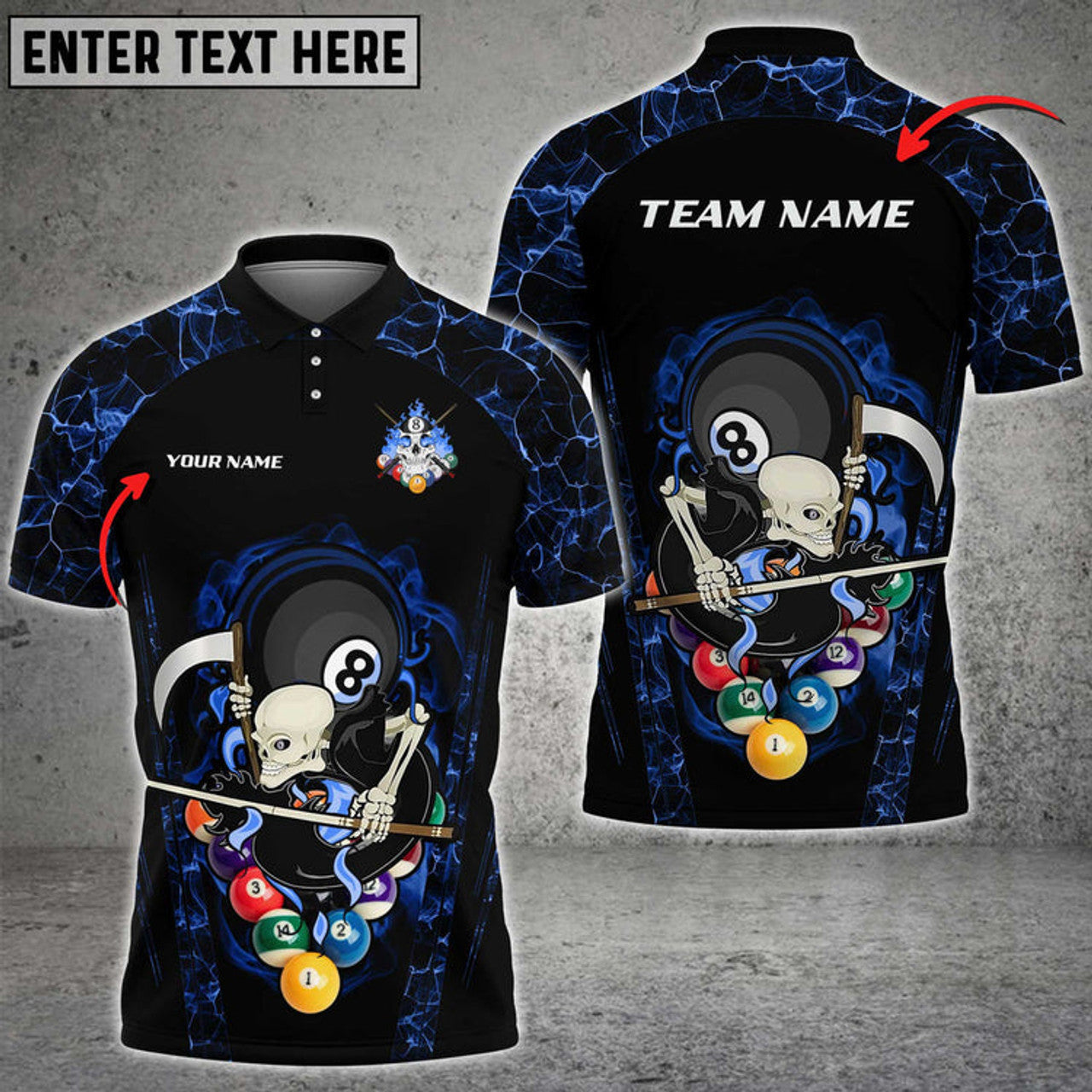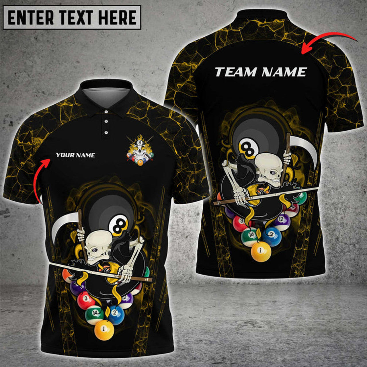 Personalized Name Team Skull Billiard 8 Balls Multicolor Option, Skull Billiard Polo Shirt