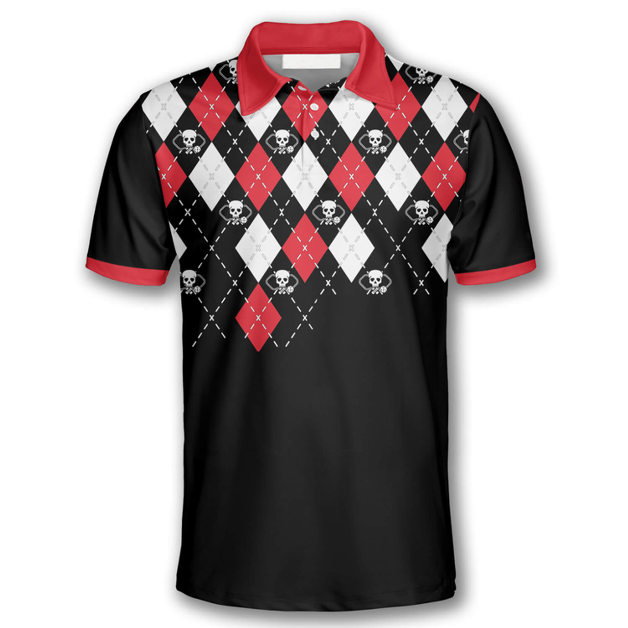 Personalized Skull Argyle Pattern Custom Pickleball Polo Shirts for Men